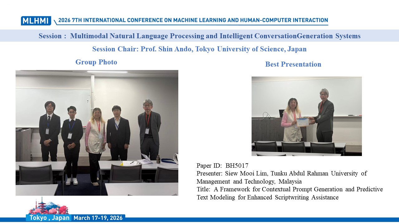 2026 7th International Conference on Machine Learning and Human-Computer Interaction was held successfully online and offline combination in Meiji University (Surugadai Campus), Tokyo, Japan.during March 17-19, 2026. Thanks for all your contribution.